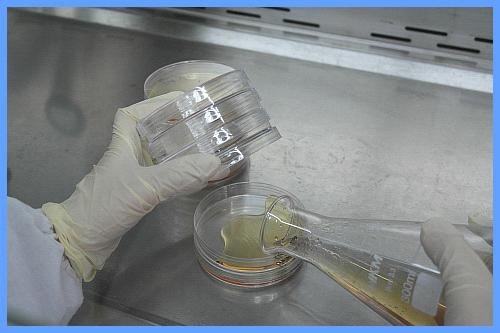9、將(jiāng)标记好(hǎo放會)的无菌平皿翻转過(guò)来,当培养基温度下降到(dào)50℃農影左右時(shí),倾倒培养基。