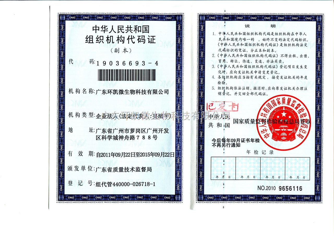 广东环凯微生物科技有限公司(组議章织机构代码证)