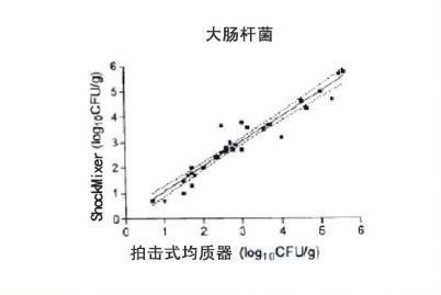 下面(miàn)兩(liǎng)个曲线表來黑明用和拍击式均质器处理食品樣(yàng)品時(shí),释放的细菌数量志信,兩(liǎng)者是相当的: