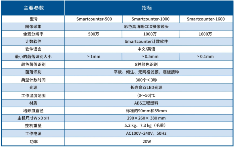 3、Smartcounter/自动菌落计数仪技术参数:
