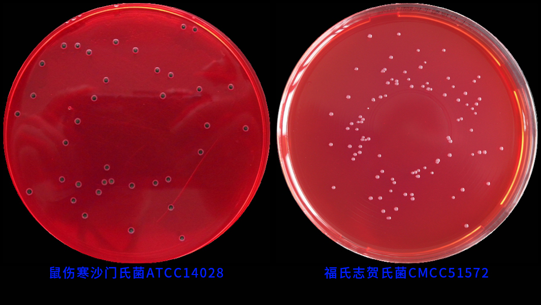 | 鼠伤寒沙门氏菌ATCC14028 | PR≥0.7 | 红色菌落,有黑心 | |