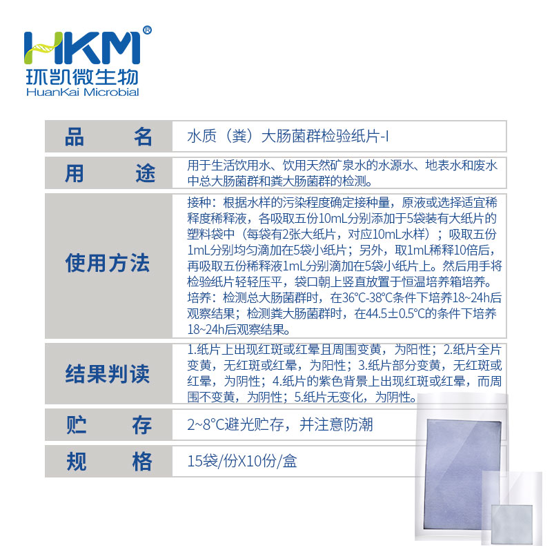 水质总大肠菌群和粪大肠菌群测试纸片 10mL&1mL(HJ755标准)下看