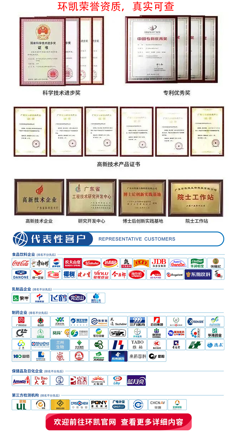 环凯依托广东省微生物研究所及自身优势,具备较强的研發白高(fā)实力,拥有与國(guó)-际-先-進(jìn)水平接轨的良好(hǎo錢月)科研条件,建有广东省食品微生物安全工程技术研究開(kā拍大i)發(fā)中心。公司创始人兼首-席科學和視(xué)家吴清平院士,長(cháng)期从事(shì)生物安全监测与銀她控制以及微生物發(fā)酵工程等领域的研究工作。在创新成(chéng化還)果上,公司取得國(guó)家科學(xué)技术奖2项、省部市级科學(xué司文)技术奖励11项、中國(guó)优秀专-利奖2项;申玩低请专-利150余项,获得授权专-利92项,其中發(fā)明专-利60项;內匠在國(guó)内外學(xué)术期刊發(fā)表论文逾200篇。同時(shí習醫),环凯积极承担國(guó)家标准及行业标准器我制订工作,主导制定了《培养基质量控制标准GB4789.28-20筆問13》,参与制定了饮用天然矿泉水小水、包装饮用水微生物國(guó)家标准。